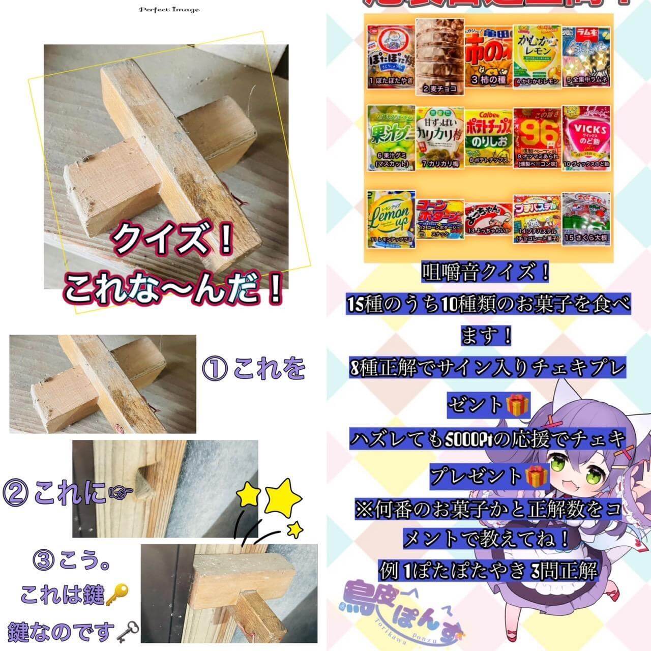 あと、誰でも楽しめるもの! せっかく来てくれているのに一部の人しか参加できないみたいなのは嫌なので。それでまず考えたのが「鳥皮ぽんずクイズ」です。枠に何度か来ていたら答えられるようなクイズを30問くらい用意して、正解数によっては特典あり。答えられなかった人にはもっと遊びに来てもらって、早く答えを見つけてねって(笑)。