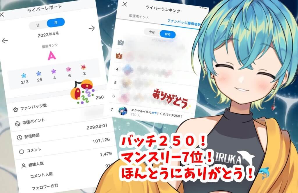 けど、そのタイミングでぼく、当時あったファンバッジの獲得数によって毎月表彰される「バッジマンスリー」で7位に入賞できたんです。入賞をめざして日々長い時間配信をしていたぶん、いままでにないくらい多くのリスナーさんたちと交流することができました。