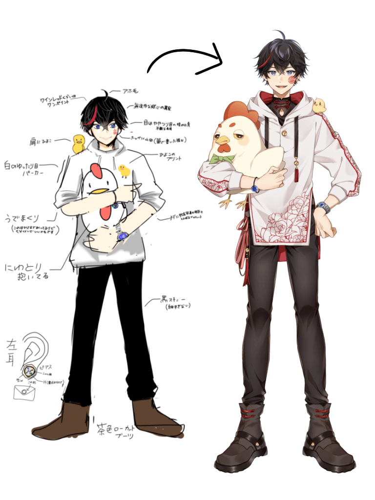 そんな気持ちが一変したのが立ち絵をもらった瞬間でした! 僕、多少絵が描けるので、立ち絵に関しては自分である程度イラスト化して希望を出していたんですね。そしたら優にその100倍くらいは良い、想像をはるかに超えてくる立ち絵が降臨して、思わず「これはちょっと本気でやんなきゃ!」ってなった。それくらい本当にすごいイラストで、自分がこれになれるのかって思ったら、がぜんやる気が湧いてきたんです。