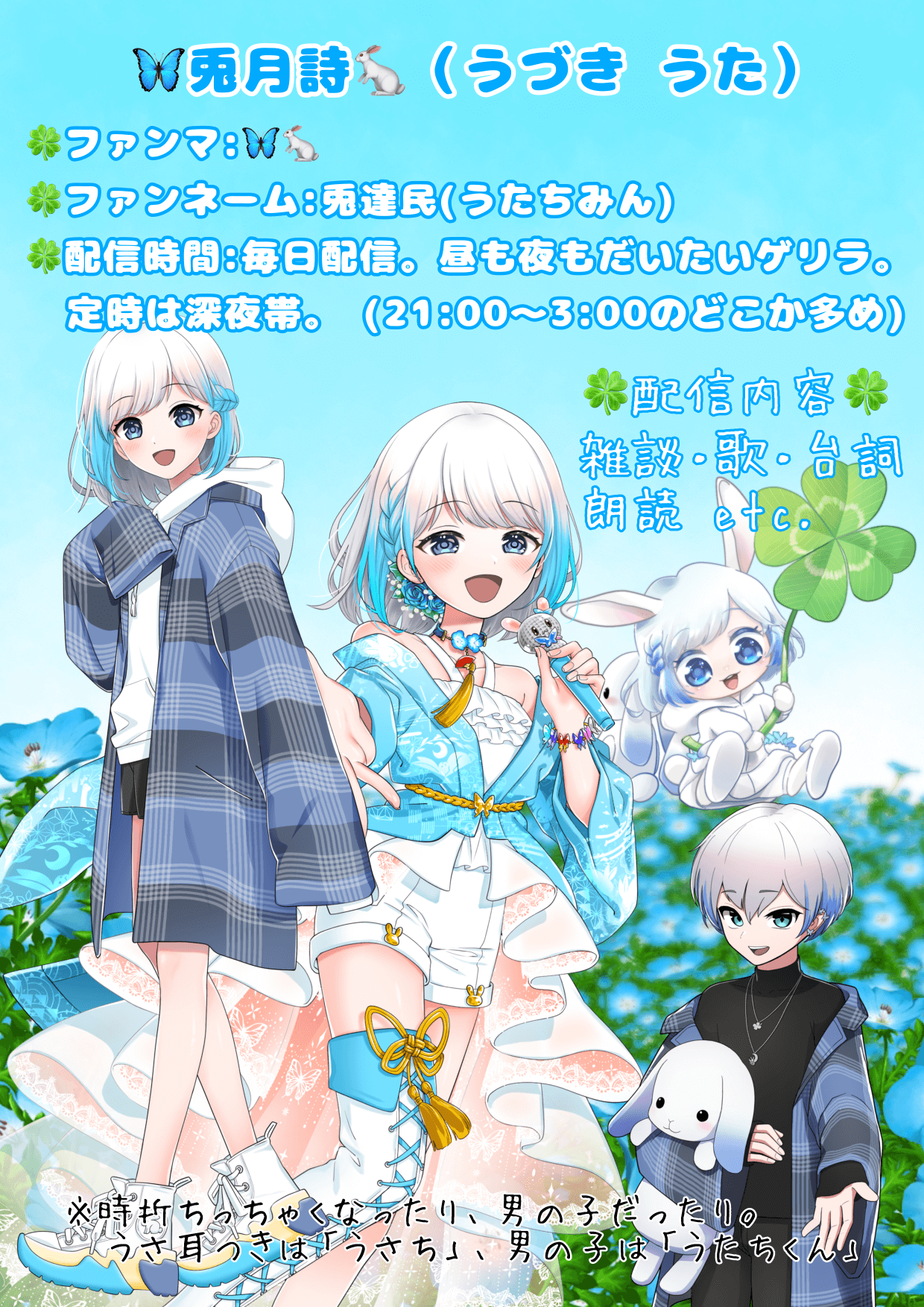 そうなんです。魂の部分をカミングアウトするかどうかはずいぶん悩みましたし、公表したときはかなり緊張もしたんですけどね。やっぱり立ち絵の可愛さが好きで来てくれる人やずっと枠内の兎月詩だけを見ていたい人も多いと思うし、リアルとつなげてほしくないって人も絶対にいるはずなので。
