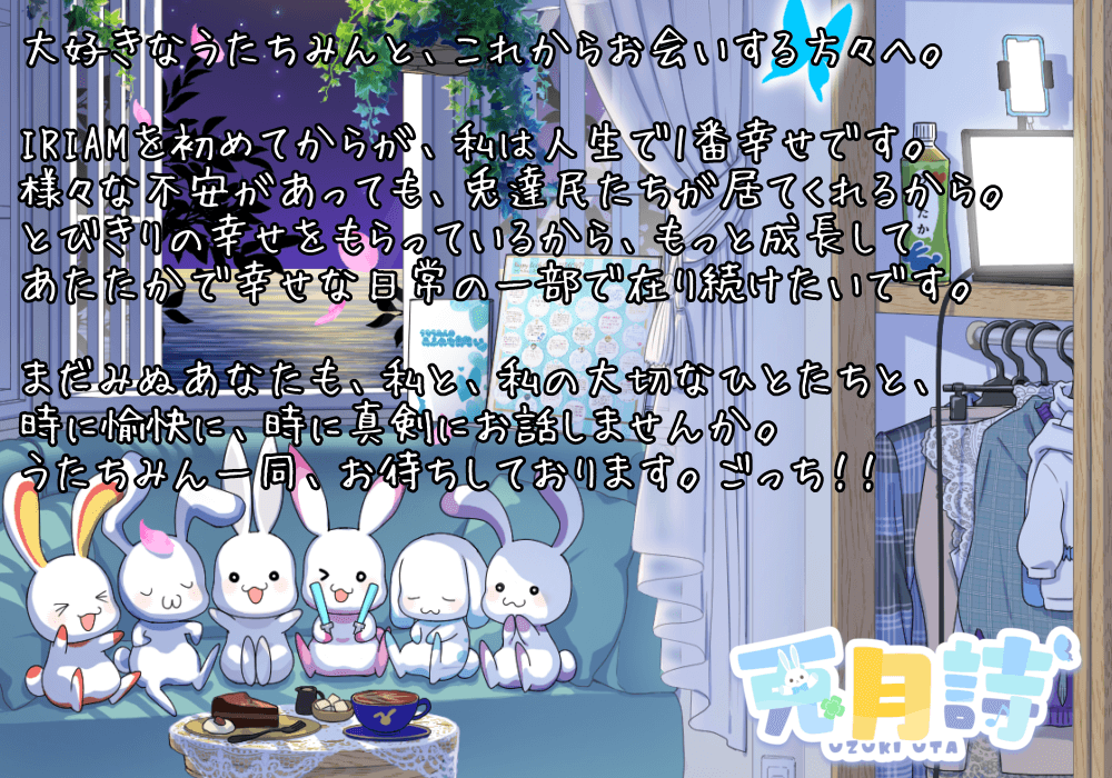 本当にそうですね。私はもともとネガティブ思考に陥りやすいんですが、兎達民たちが私の良いところを具体的に挙げてくれたり詳細に褒めてくれたりすることで、肯定できる部分が増えてきた。IRIAMと出会えたおかげで、自分を好きになれました。