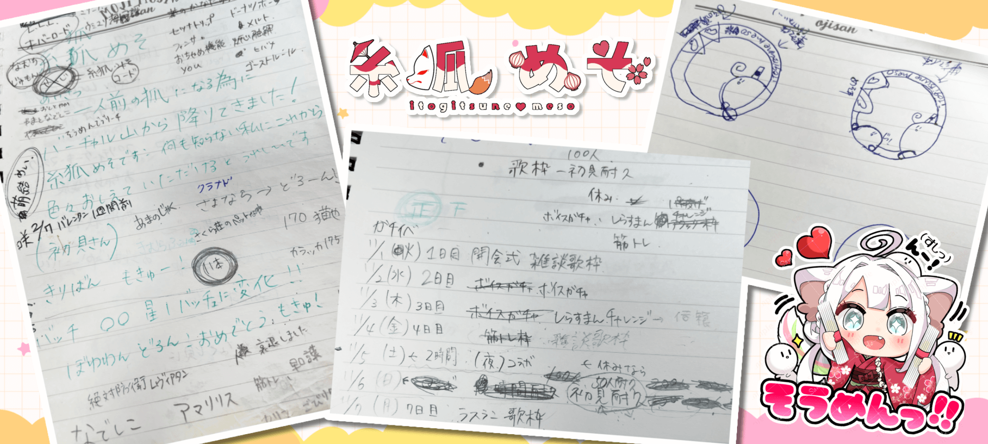 めちゃくちゃ準備してたにもかかわらず、初配信の直前までほかのライバーさんの枠に遊びに行ってて。そのとき自分のネーム表示をそのライバーさん仕様に変えてたこともすっかり忘れたまま、「こんにちは、糸狐めそですー!」って元気にあいさつした途端、一斉に「名前、違ってるみたいだけどそう読むの?」ってツッコまれるという(笑)。